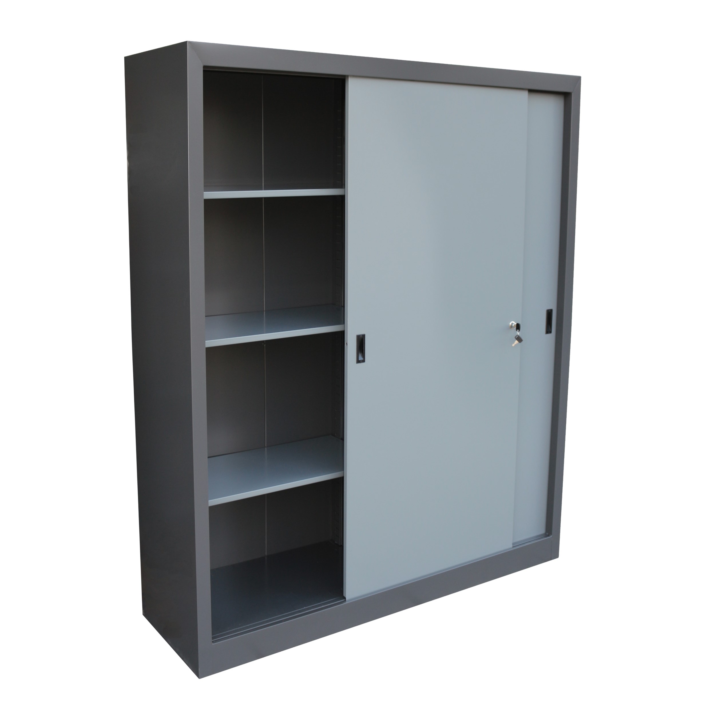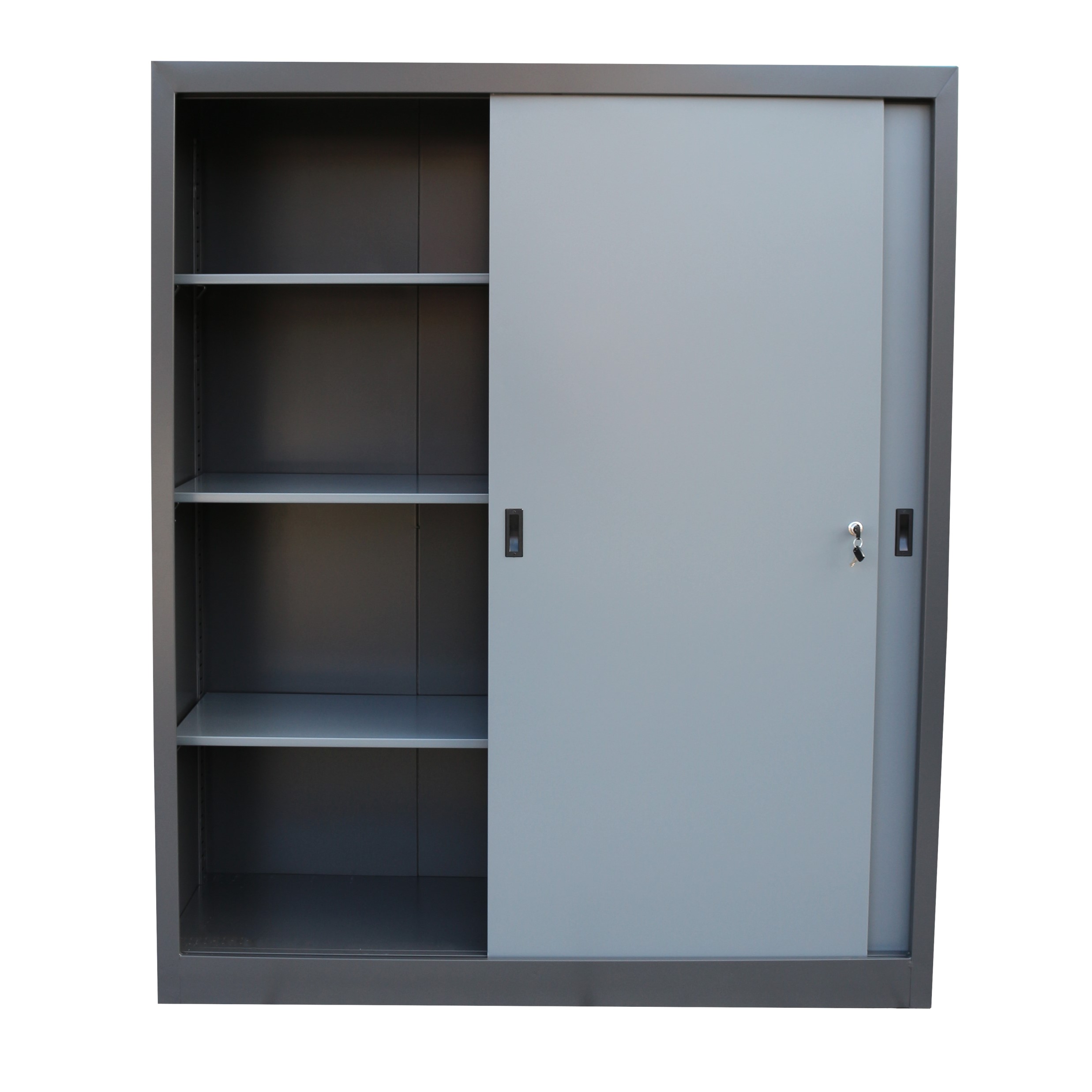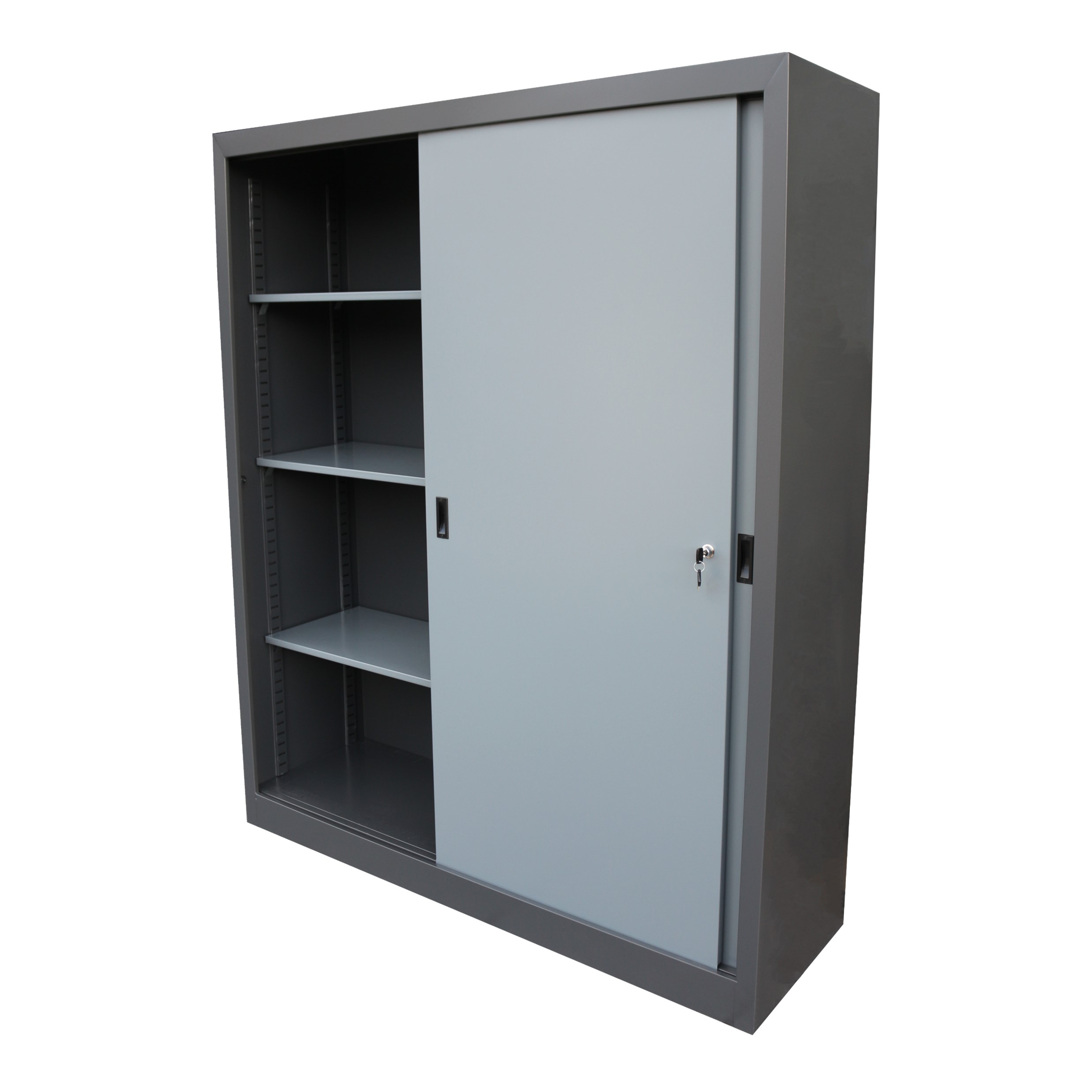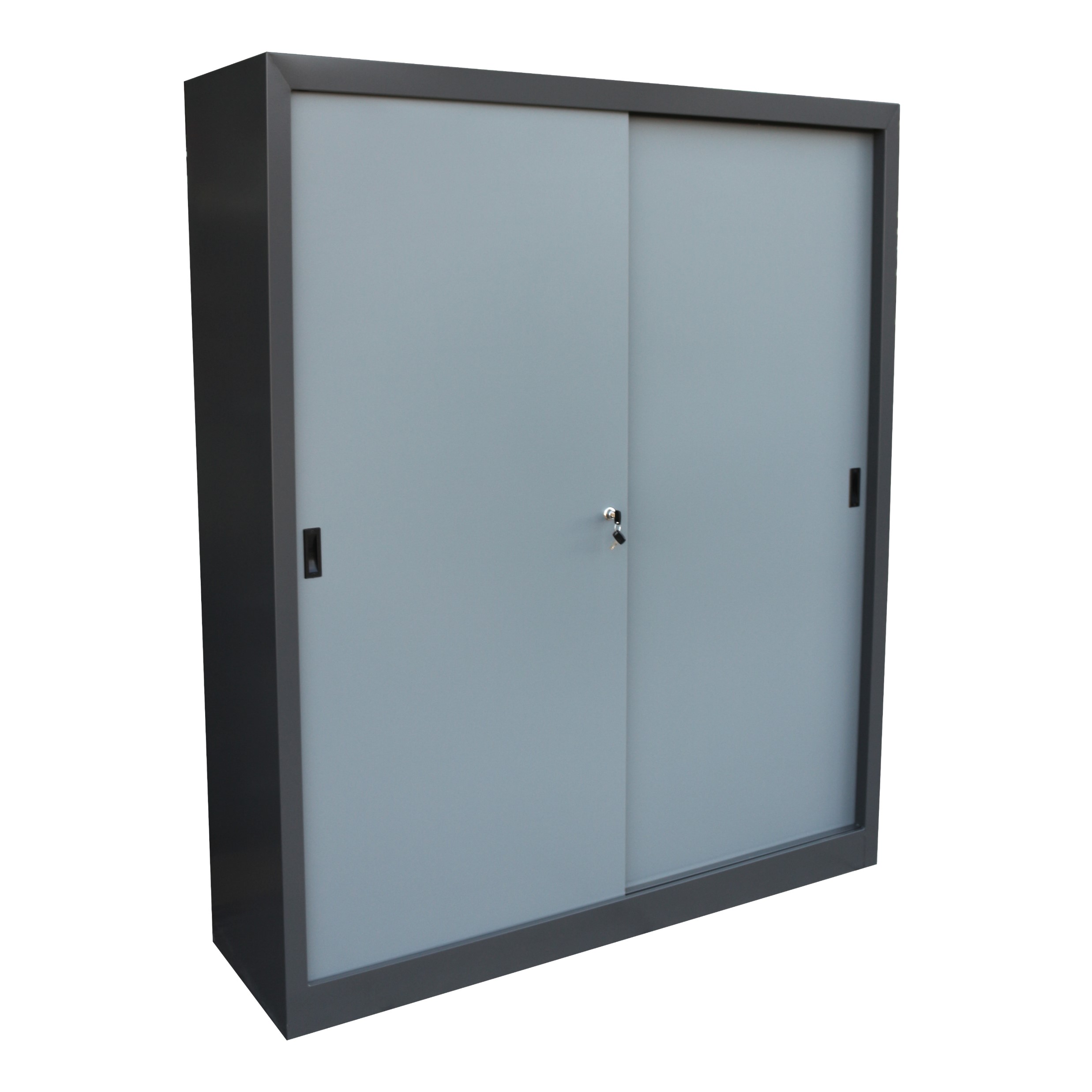 Armario Metálico de 2 Puertas Corredizas, con tabique divisor interno vertical y 6 estantes internos regulables por cremallera lateral (3 de cada lado).