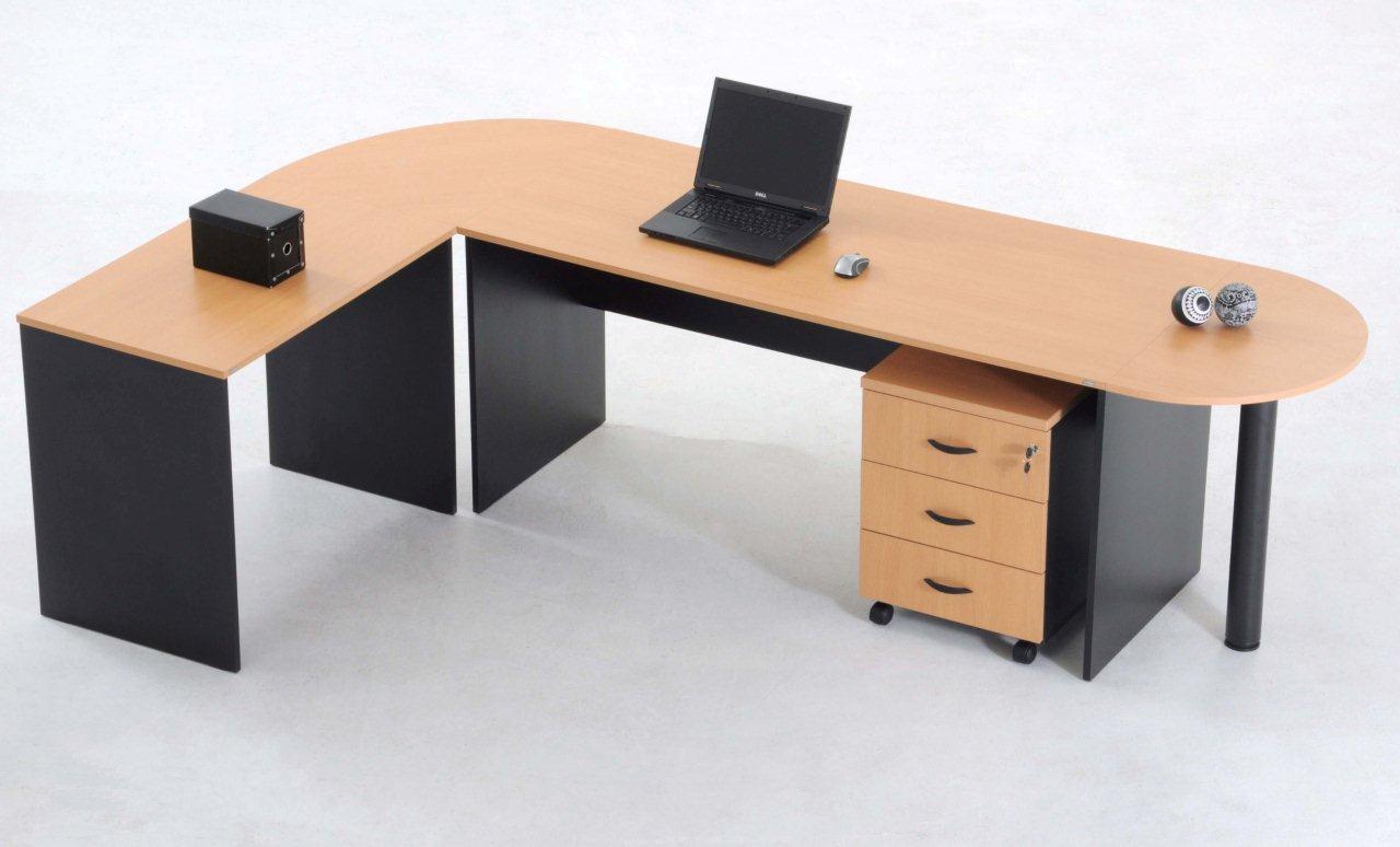 Escritorio línea Baguette de 144x70cm con extensión lateral, esquinero 90°, península 70cm con columna de Ø 80mm y cajonera rodante de 3 cajones. Color : Haya – Negro Dimensiones : 233 x 160 cm.