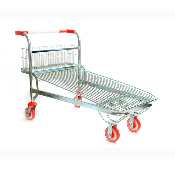 Carro de gran capacidad de carga ideal para supermercados mayoristas y depósitos. Construidas con alambre trefilado SAE 1010 de 12 y de 6 mm, con estructura de caño oval soldado electrónicamente con soldadura de resistencia y proyección. Manija de sujeción y canasto porta objetos. 4 ruedas reforzadas.