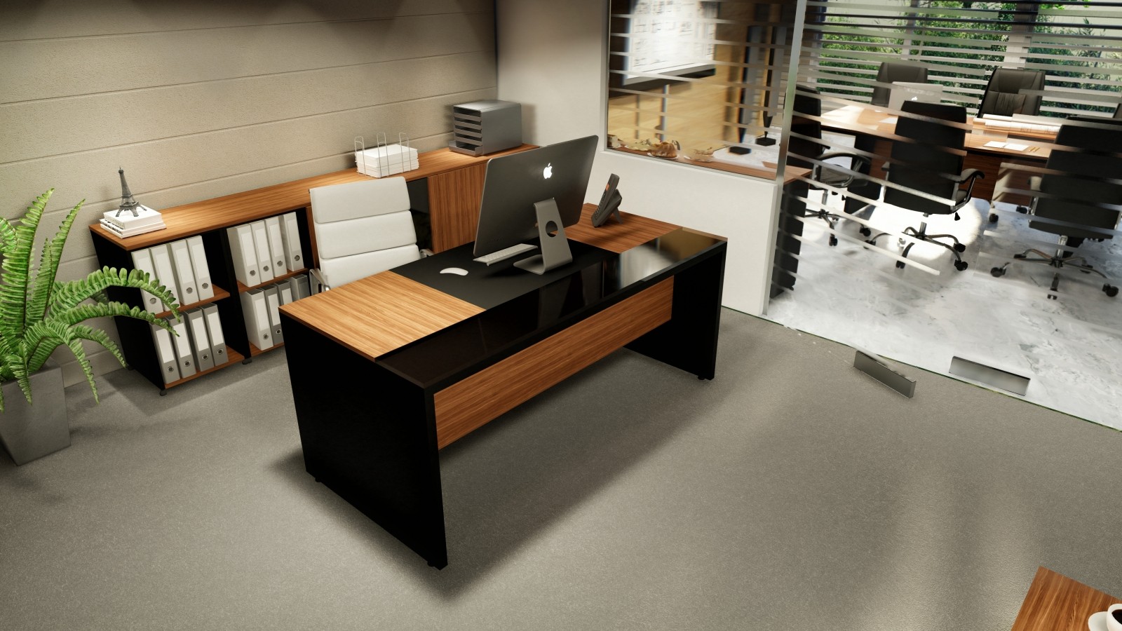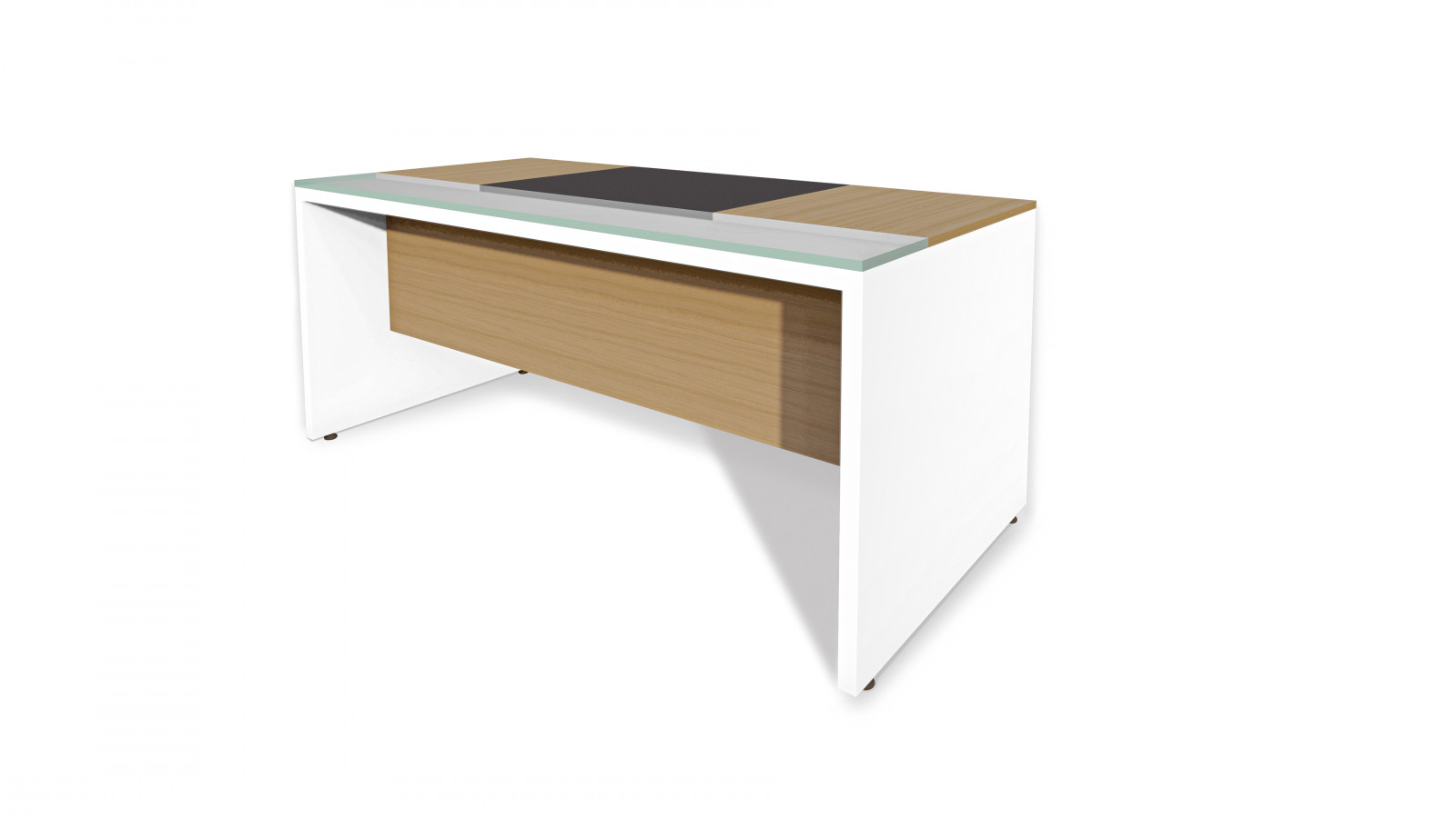 Escritorio Gerencial linea Futura de 1600x850mm con tapa de 850mm de melamina, eco-cuero y Vidrio de 18mm.