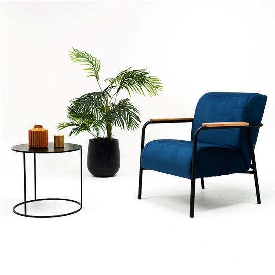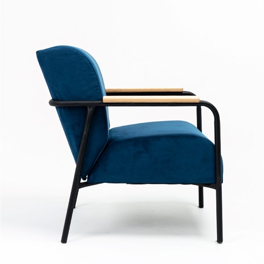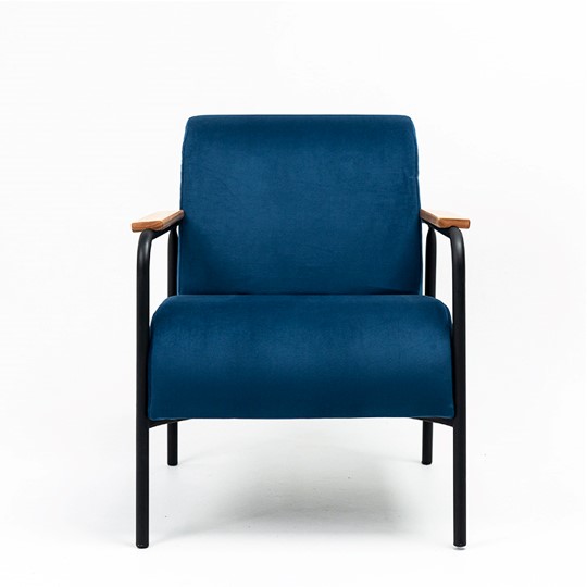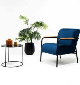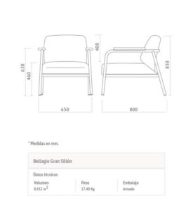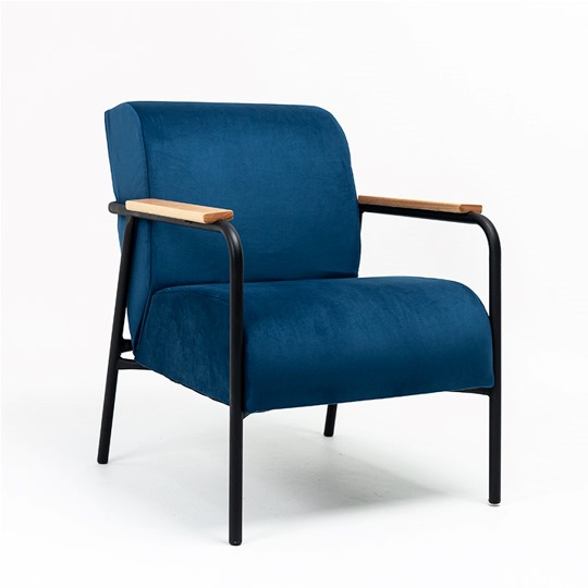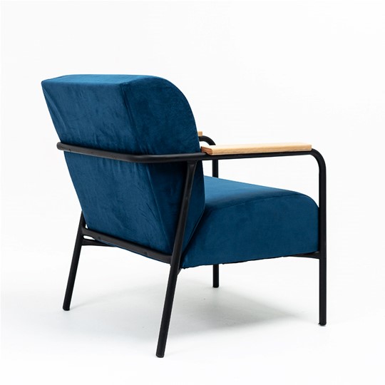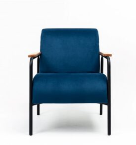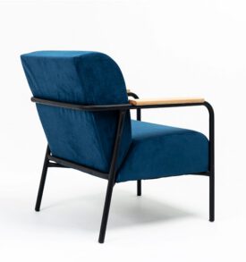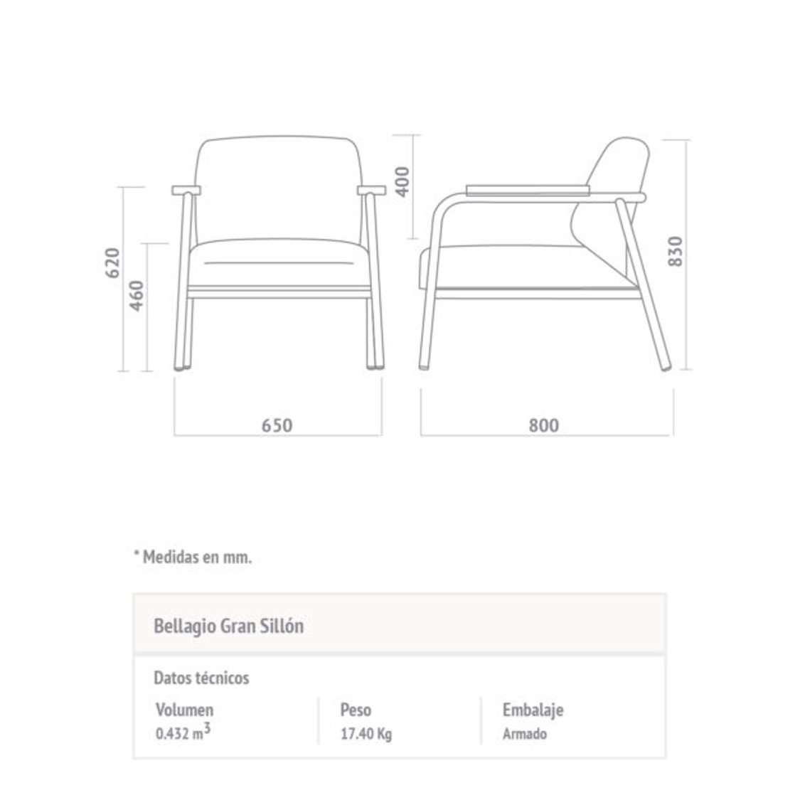 Estructura fija de caño con detalles en apoyabrazos de madera.