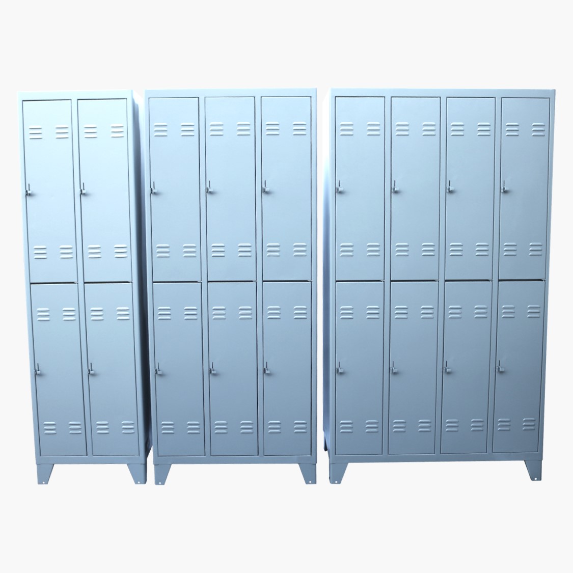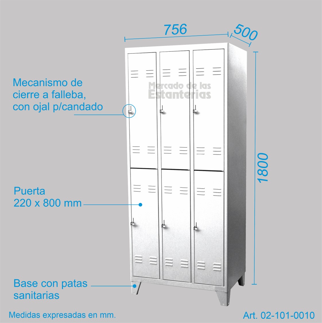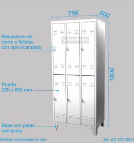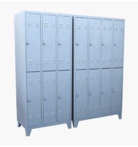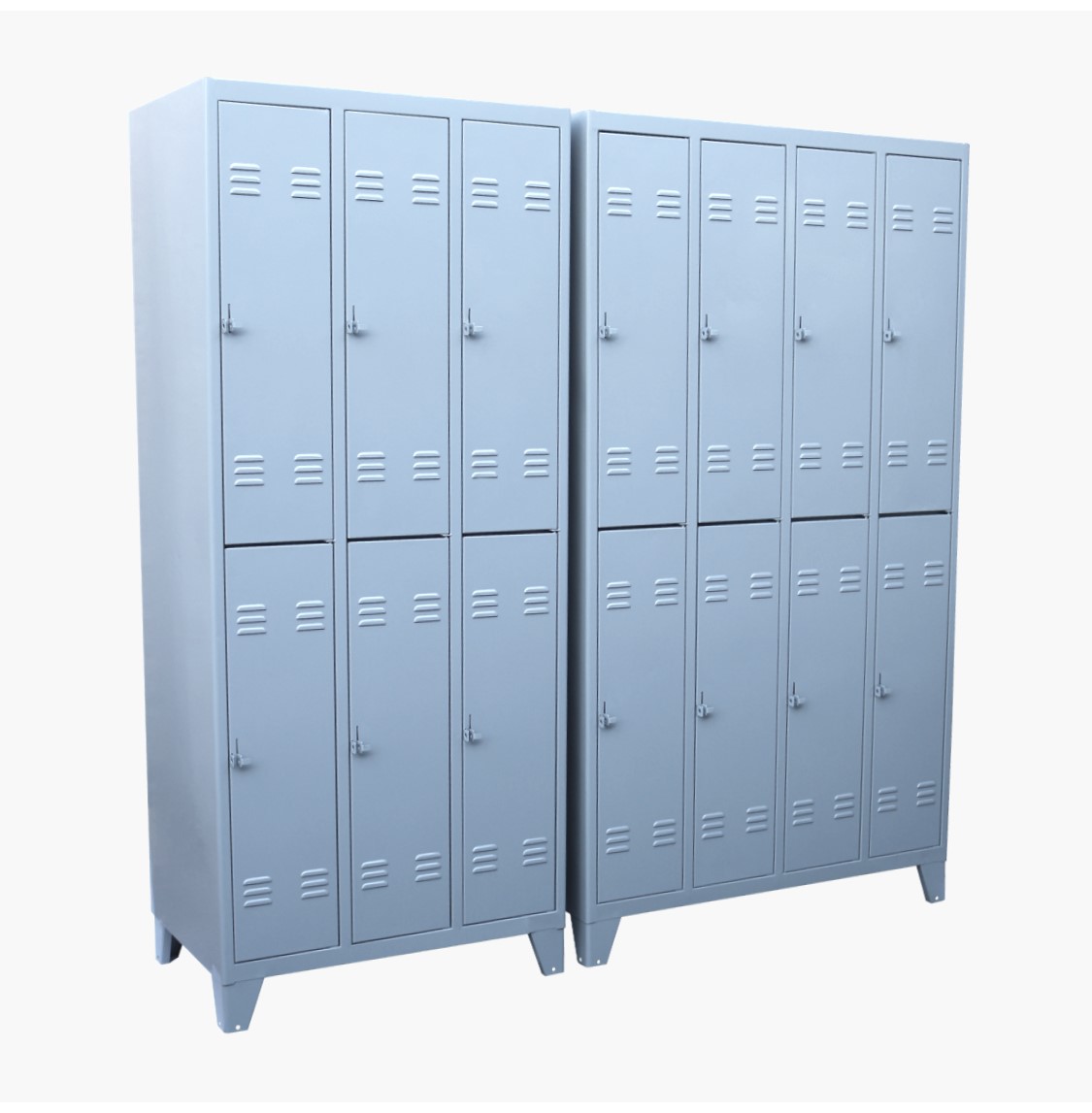 Cada compartimiento incluye, barral para perchas, gancho perchero lateral, y puerta con refuerzo interno, doble rejilla de ventilación y manija con dispositivo de cierre de fácil accionamiento y ojal para candado.