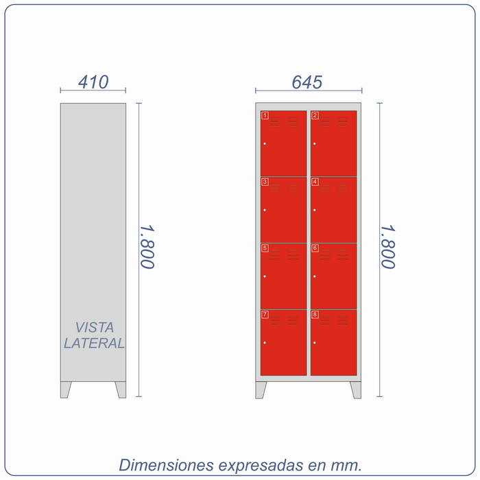 Locker metálico Guardabolsos, linea Modena, de 8 Puertas con Cerradura