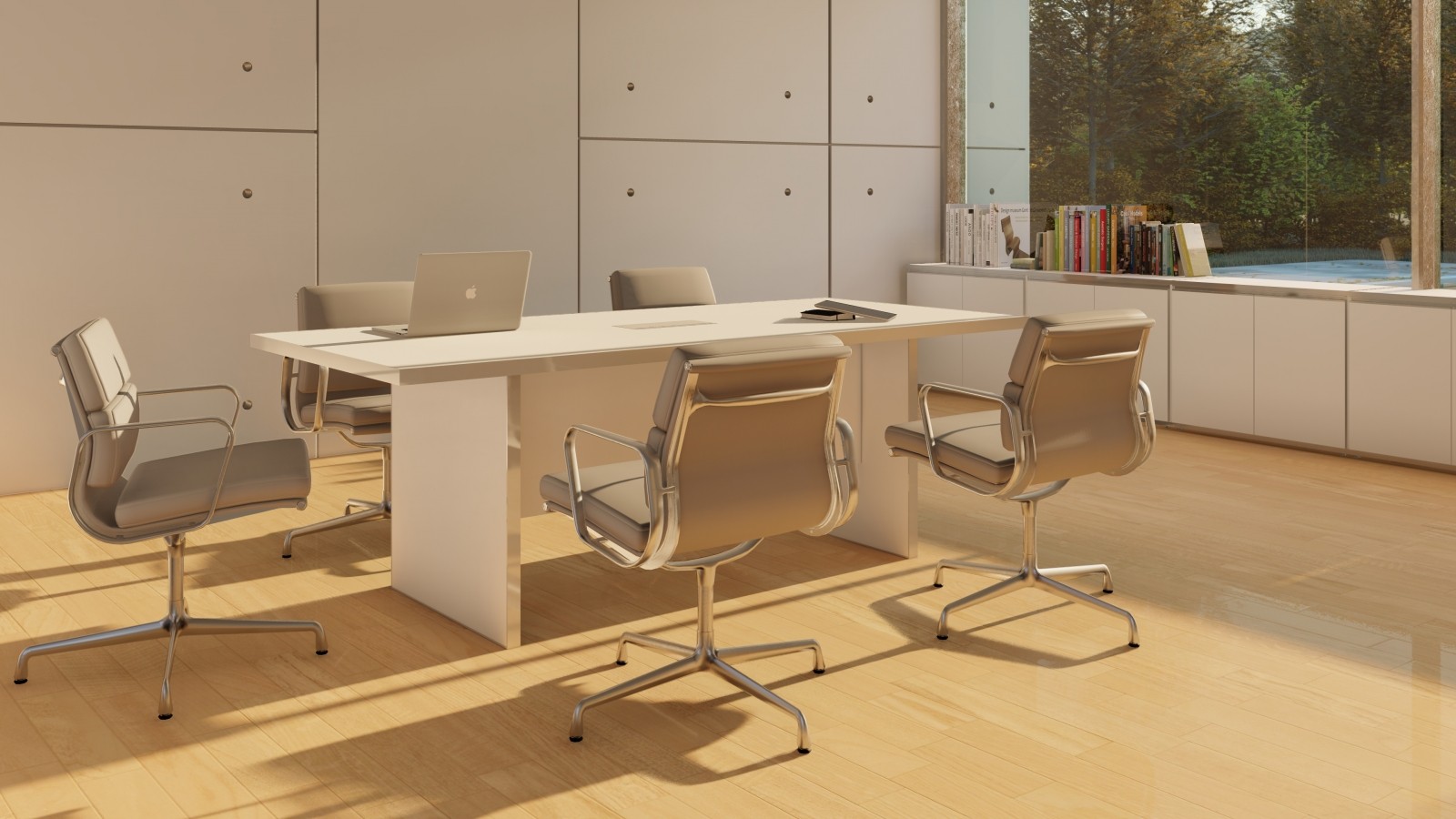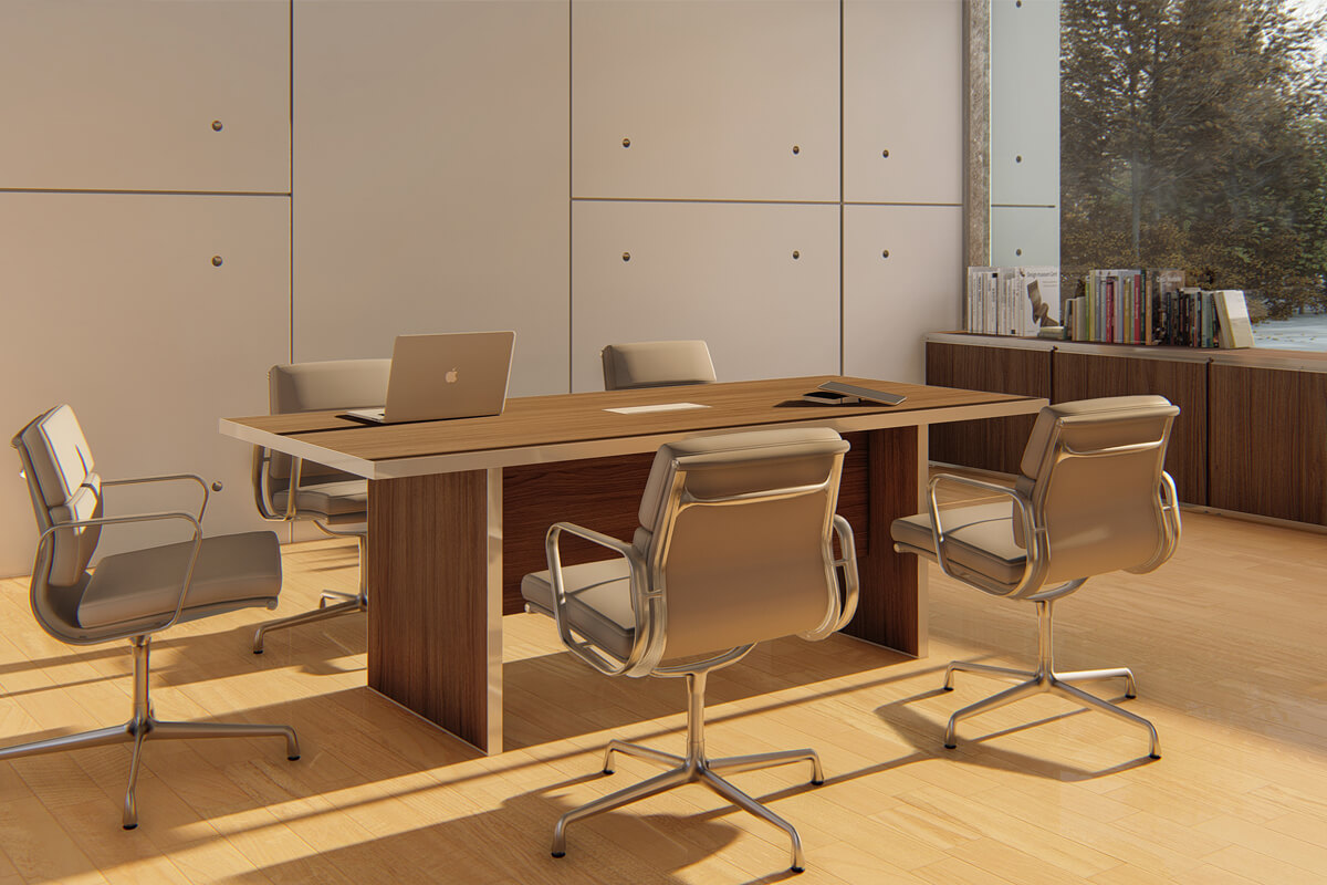 Mesa de Reuniones línea Roma de 1800x900mm con tapa pasa cables de aluminio de 2 tomas