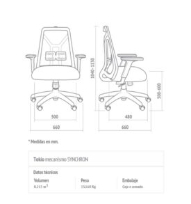 Respaldo tapizado en tela de red color: Azul, gris perla, naranja, negro, visón, rojo, verde, petróleo.